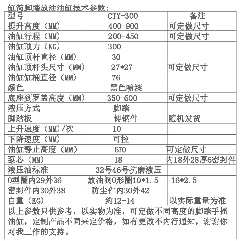 300KG缸筒脚踏放油油缸 液压千斤顶 行程400mm 堆高车提升顶